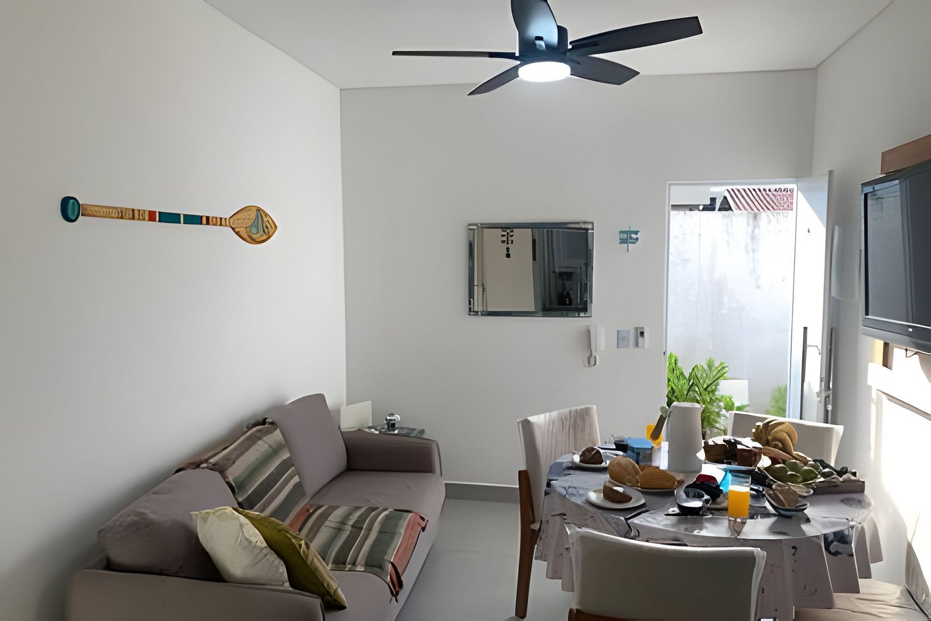 - Controle do portão da garagem está em cima do móvel da tv na sala;